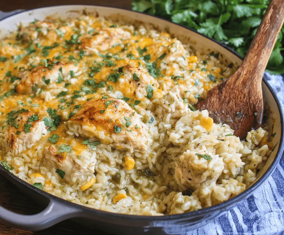 Salsa Verde Chicken and Rice Casserole is a bright and comforting dish that combines tender chicken, zesty salsa verde, and fluffy rice all baked together to make one happy, flavorful meal. The tangy green sauce mixed with cheese and seasoned rice gives this casserole a lively taste that’s a little spicy, a little cheesy, and totally delicious.