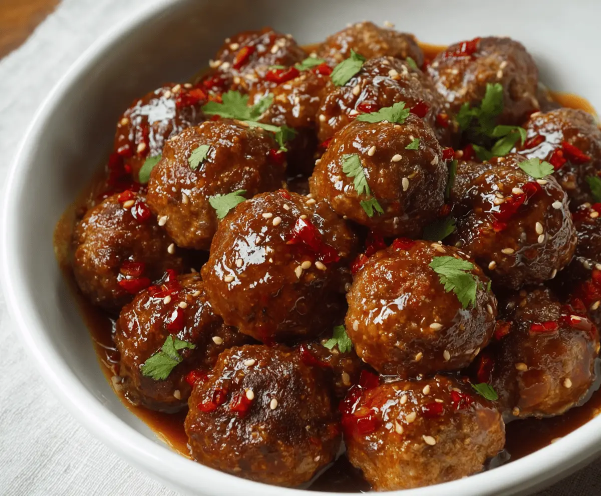 Before serving, stir the meatballs gently to coat them well in sauce. Garnish with sesame seeds and chopped cilantro or green onions for a fresh touch. These meatballs are delicious on their own, served over steamed rice or noodles, or even in slider buns for a fun twist!